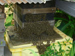 庭の片隅に置いてある「ニホンミツバチ」の巣箱だが、最近は箱の周りにびっしりとハチたちが群れている。木陰に置いてあるのだが、日中は気温が高くなるため、群れで水を運んだり、集団で箱周りを(羽を震わせ)冷却しているようだ。蜂たちの知恵と努力は大したものである。