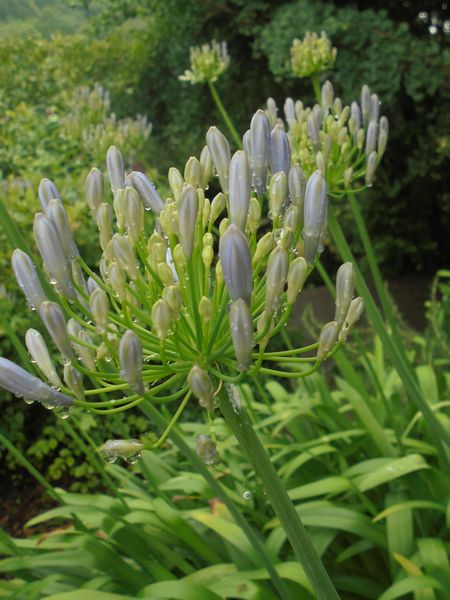 庭に数か所植えてある「アガパンサス」が今年も咲き始めた。1mほど長く伸びた茎の先端に沢山の花が群がって着く。原産地は南アフリカだという。丈夫で、植えっぱなしでも育ち、冬でも葉が枯れることはない。花期は梅雨~夏にかけてで、淡い青紫色の清涼感あふれる花が鑑賞出来る。この花が散り始める頃にはじめじめとした梅雨が明ける。もう少しの辛抱である。