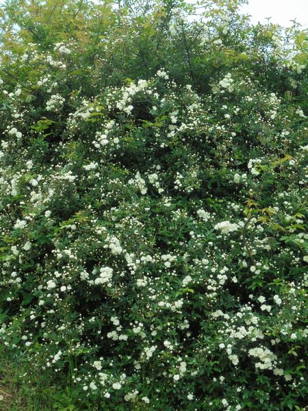 我家の車庫裏にあるモッコウバラ(木香薔薇)の花が次々咲き始めた。昔、県南で苗木商を営む友人から小苗を分けて貰ったものである。白系と淡黄系の2品種ある。毎年4月下旬頃になると一斉に咲き始める。薔薇(バラ)と言っても、棘は無く、葉も極めて小さい。花は枝にびっしりと着く。木香薔薇の名の通り、香りは大変良くて付近を通ればすぐにそれと分かる。樹勢は比較的旺盛で、細い枝が2~3mの高さに伸びる。常緑で寒さに弱いと言われるが、我家では冬期に剪定を行うのみで葉や枝が枯れ込むようなことはない。