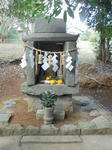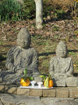家族皆の健康祈願と幸せを願い、朝一で屋敷裏の仏像にお参りした。これは若い頃に自分で造ったコンクリート製の2体の阿弥陀如来座像である。昨日、周囲の清掃とお供え(お酒、蜜柑など)をした後に、今朝お餅を供えたが、2重ねの餅はカメラを取りに帰った隙に、あっという間にカラスに持って行かれた。烏の餌になるのも一つの功徳だろうと思い諦める。仏像は製作してから、かれこれ40年近くにもなる。折に触れ、お詣りを続けているが、大病もせず、大きな不幸にも遭わず今日まで来れたことに感謝である。今年もなお一層の健康管理に努め頑張りたいと思う。