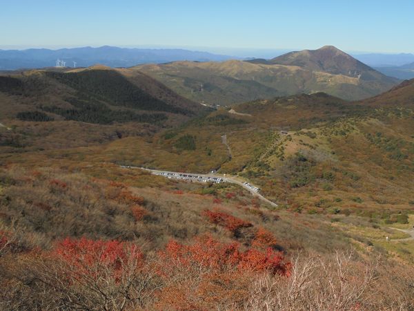秋の深まりと共に、各地から紅葉の便りが届いている。先週、「久住連山」へ登って来た。久住へは若い頃(もう50年も以前になるが)に何度も登ったことがあるが、最近は足・腰を痛めたこともあり、とても1千6百メートルもある山には登れないと思っていたが、気長な連日の散歩やリハビリの効果もあって、チャレンジしてみようと思い、思い立ったが、嬉しいことに何とか登れた。牧ノ戸峠から沓掛山を経て「扇ケ鼻」のピークまで今回は登った。好天に恵まれ、空気が澄み、真っ青な空の下、眼下には阿蘇連山(根子岳、中岳、高岳など)が、遠くは祖母、傾の山並みや長崎県の雲仙普賢岳までくっきりと見渡せた。今回の山行は往復5時間の行程だった。ドウダンツツジやカエデなどの紅葉が見事だった。扇ケ鼻周辺はミヤマキリシマの株が多く、花のシーズンは素晴らしいだろうと思う。体調が良ければ、来年の花の頃に登ってみたいと思う。帰ってからも足腰の痛みが無くてほっと安堵の思いでいる。