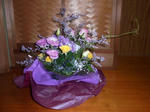 華道(池坊)を趣味にしている連れ合いが「敬老の日」の式典に華を添えようとボランティアでフラワーアレンジメントを届けはじめてもうかれこれ10数年になる。今年もささやかではあるが届けようと花屋に出向いてアレンジメントを作った。祝賀会は午前9時過ぎから開催されるので今朝は早めに公民館まで届けたいと思う。毎年のことではあるが(お花は生き物だけに)傷まないように気遣っている。今年は天気も良く無事に祝賀の行事は開催されそうである。何はともあれ、元気にアレンジメントが続けられる幸せを素直に喜びたいと思う。