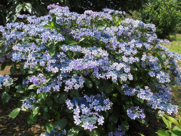 裏山では紫陽花が雨をずいぶんと喜んでいるようである。我家では数種類の紫陽花を数多く植えているのだが(数年前に)人気があるという「ダンスパーティー」という品種の小株を買って来た。次の年からは挿し芽で増やして今ではダンスパーティーは数十本になった。花の形状から見ると「墨田の花火」という種類のアジサイに似ているような気がする。桜並木の下にあるものが樹齢が行っており(5~6年生)最も勢いが良く花も多い。