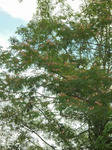 今年も合歓の木(ネムノキ)の花の咲く時節になった。ネムノキは田畑に隣接する里山ややや湿気のある湖沼付近、河川の法面などを好んで自生する。マメ科の植物で6月下旬~7月中旬にかけて淡いピンクや白い色の花を咲かせる。あまり目立たないがヒゲ状のふわとした優しい花である。名前の由来は夜になると眠るように葉が閉じることから「ねむの木」と言われるようになったという。