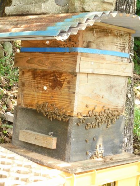 昨日の夕方(隣町に住む)親戚のMちゃんが軽トラに乗って訪ねて来た。以前に頼んでいたニホンミツバチの巣の様子を見てくれるためである。蜜箱は梅雨時には湿気などで箱の中が蒸れたりする場合があり通気や周辺環境の整備が欠かせないらしい。蜜箱を傾けた際に手鏡で(箱の下から)中を覗くとおびただしい数の働き蜂が気忙しく活動している。このまま順調に推移すれば、秋にはかなりの蜜が採れると思われる。蜜箱周辺の清掃は小1時間ほどで終了する。