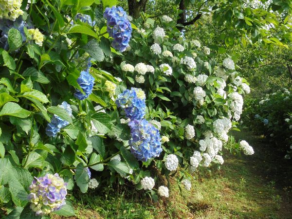 今年も6月に入った。なぜか?昔の暦では6月のことを「水無月」という。一番雨の多い時期なのにこの名が付いたのはなぜだろう。裏山では紫陽花(アジサイ)が咲き始めた。自ら紫陽花小径と名付けた裏山ではぼつぼつといろんな種類のアジサイが咲き始めた。